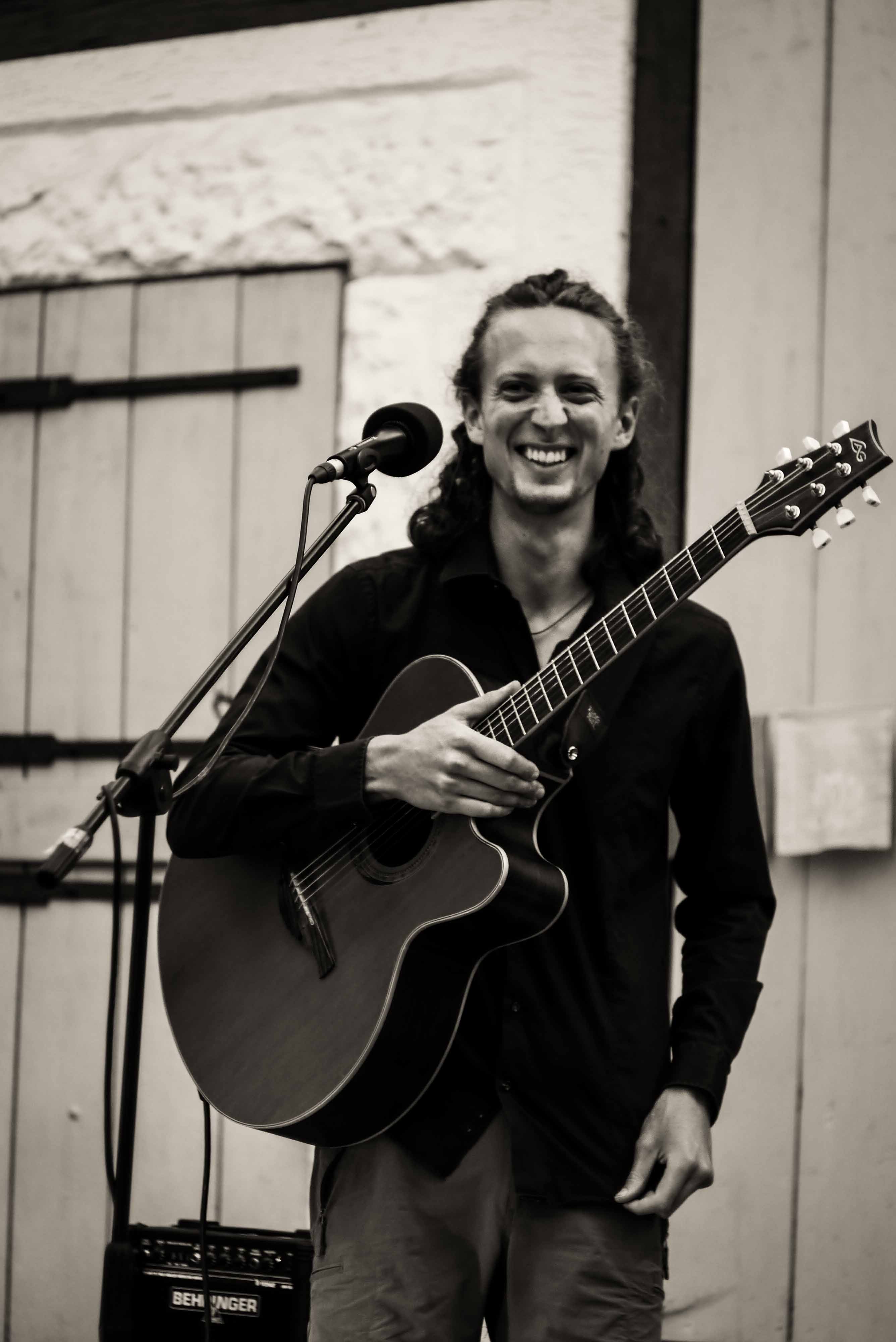 Nachdem ich im Alter von 6 Jahren auf der klassischen Gitarre angefangen hatte, lernte ich bereits als Jugendlicher Jazz-Gitarre bei GIT-Absolvent Tim Gebel (heute: UdK Berlin). Mit dem Abitur in der Tasche zog ich von Frankfurt nach Konstanz, wo ich im Naturschutz arbeitete, und erlangte dann 2018 den Bachelor of Sciences Agrar an der Universität Hohenheim in Stuttgart. Während dieser Zeit verschob sich mein Fokus zusehends auf Folk-Music und Modern-Fingerstyle. Dies mündete 2019 in meine Selbstständigkeit als Lehrer für Gitarre und 2022 in mein erstes Solo-Album „Zeichen & Wunder“.